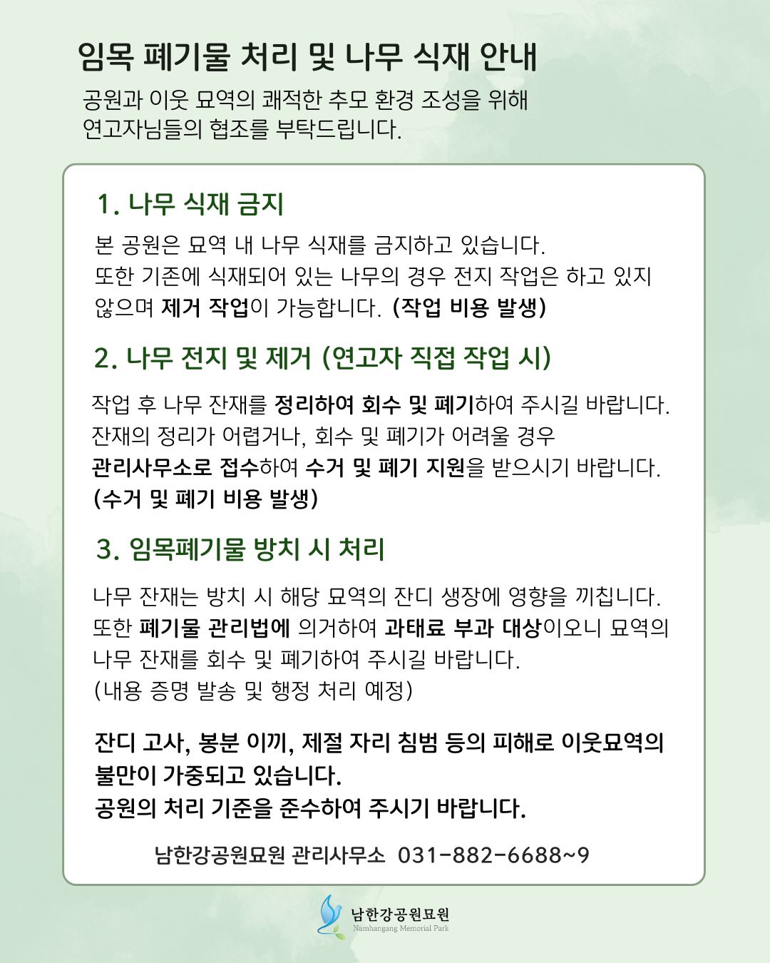* 남한강공원묘원은 365일 연중무휴로 운영되고 있습니다.